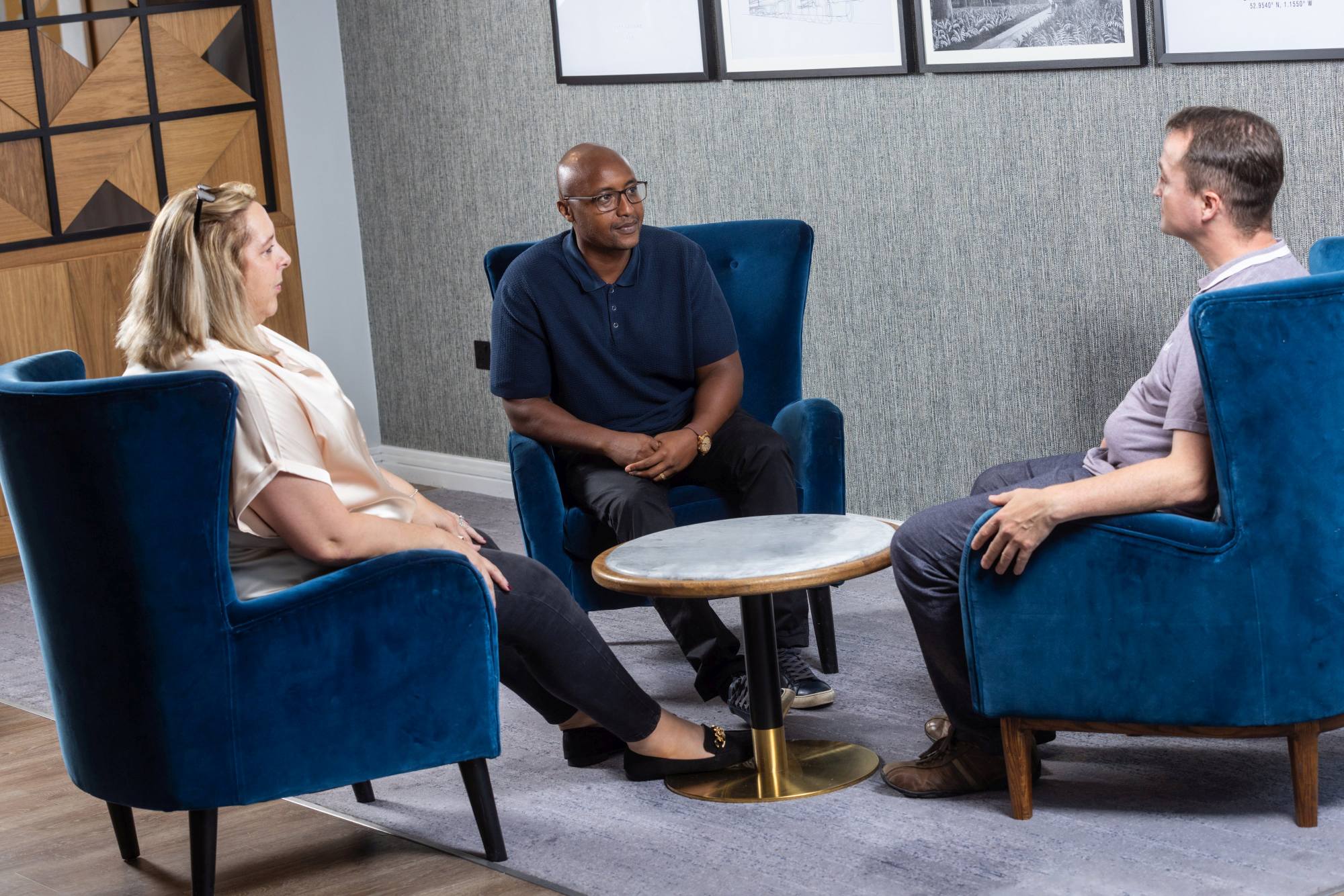 Most folks hate having their photo taken. A good photographer knows that and knows how to put people at ease. Bit of chat, bit of banter, and before they know it, it’s done. Having someone from the team in the room helping out always helps too.